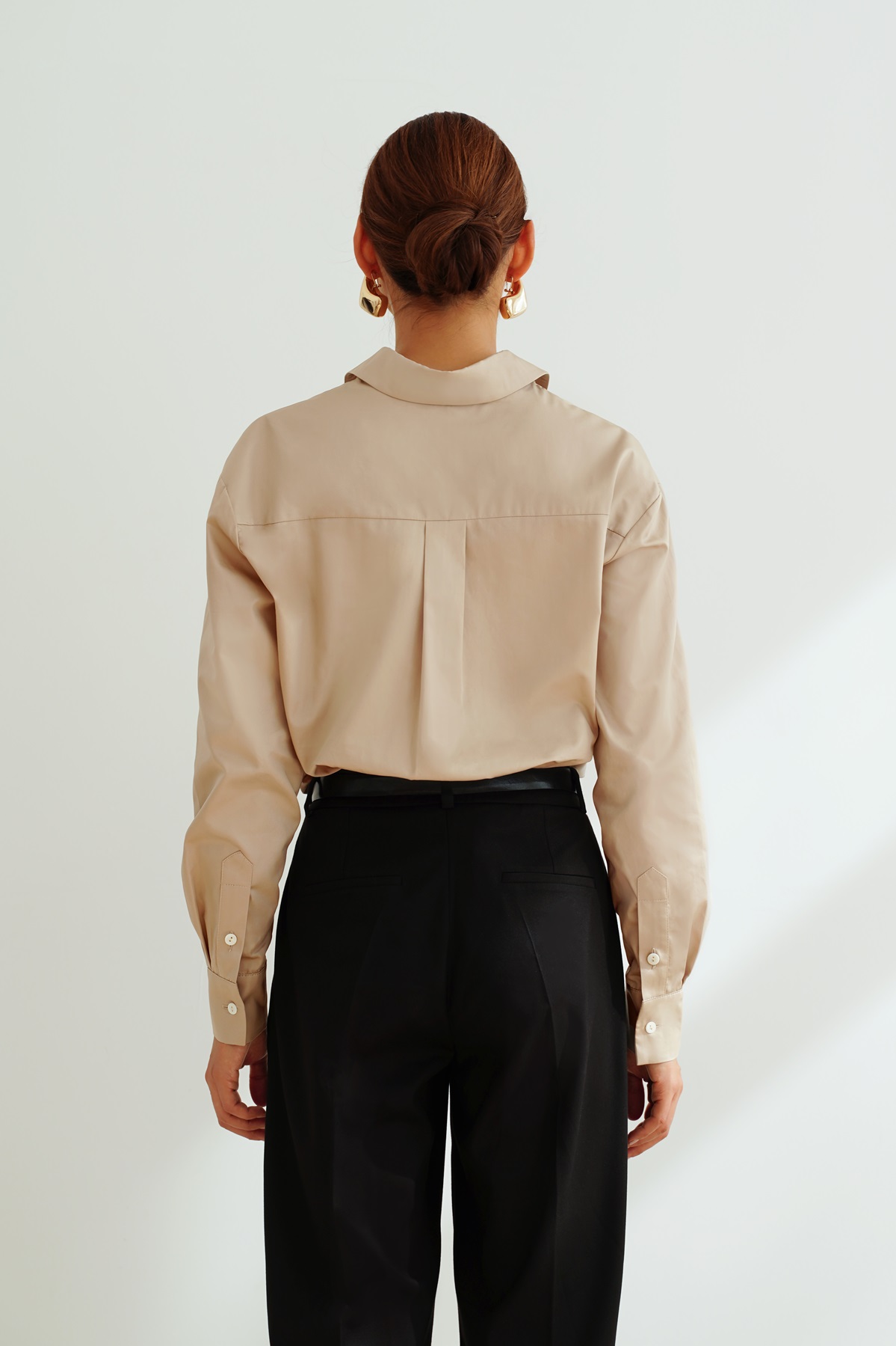 Przeszyte kanty uwydatniają linię nóg, a ukryte zapięcie na hak zapewnia gładkie wykończenie w talii, co podkreśla minimalistyczny charakter tych spodni. Wykonane z tkaniny wiskozowej, są odporne na zagniecenia, zapewniając nieskazitelny wygląd przez cały dzień.